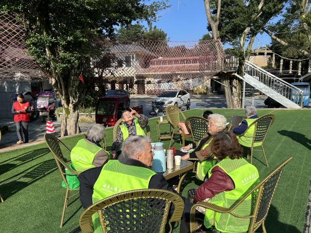自由休闲时光里,长辈们各寻乐趣:几人围坐玩扑克、搓麻将,出牌间隙摆龙门阵、聊生活趣事,热闹十足;还有长辈在遮阳棚下闲谈,工作人员持相机穿梭,主动为大家拍摄纪念照,定格温馨瞬间。