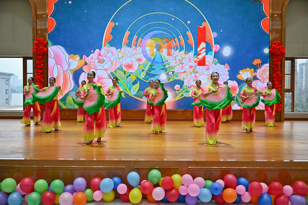 峨眉山老年体育协会的特色节目惊艳全场,健身气功《气舞》舒缓连贯,尽显养生魅力;《欢乐秧歌》则以绸带扇子挥舞、欢快舞步踏响新年期盼,将喜庆氛围推向高潮。