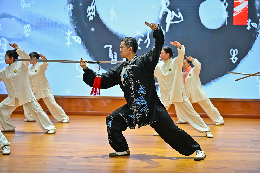 特邀嘉宾表演亮点纷呈,为欢庆会注入浓厚艺术氛围。红星太极气功队接连献上《三十二式太极剑》与《养生功十二法》,太极剑刚柔并济、舒展飘逸,尽显传统武学神韵与养生智慧。