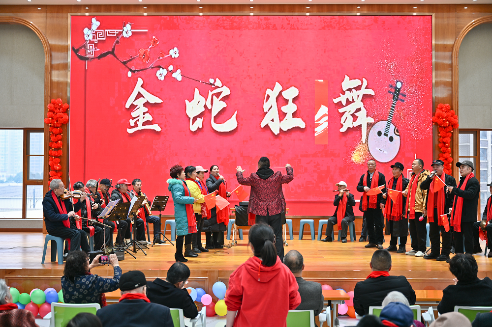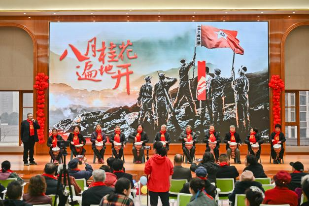 桂花桥音乐之家的乐器合奏《金蛇狂舞》与红歌联唱,旋律激昂、配合默契,悠扬乐声与嘹亮歌声交织,赢得掌声不断。
